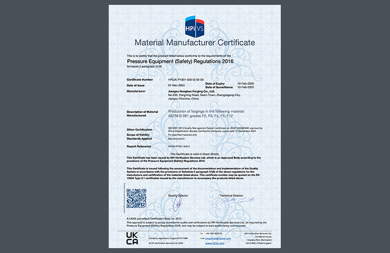 材料制造商證書