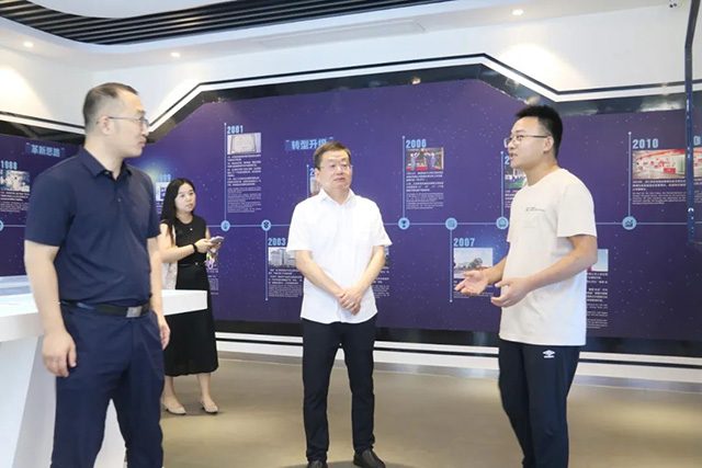 隨后,譚主席一行參觀了宏寶展廳,觀看了企業(yè)宣傳視頻,了解了宏寶集團(tuán)的發(fā)展歷程,集團(tuán)公司黨委書(shū)記丁亞龍匯報(bào)了集團(tuán)近幾年的發(fā)展情況及勞模創(chuàng)新工作室取得的成績(jī)。
